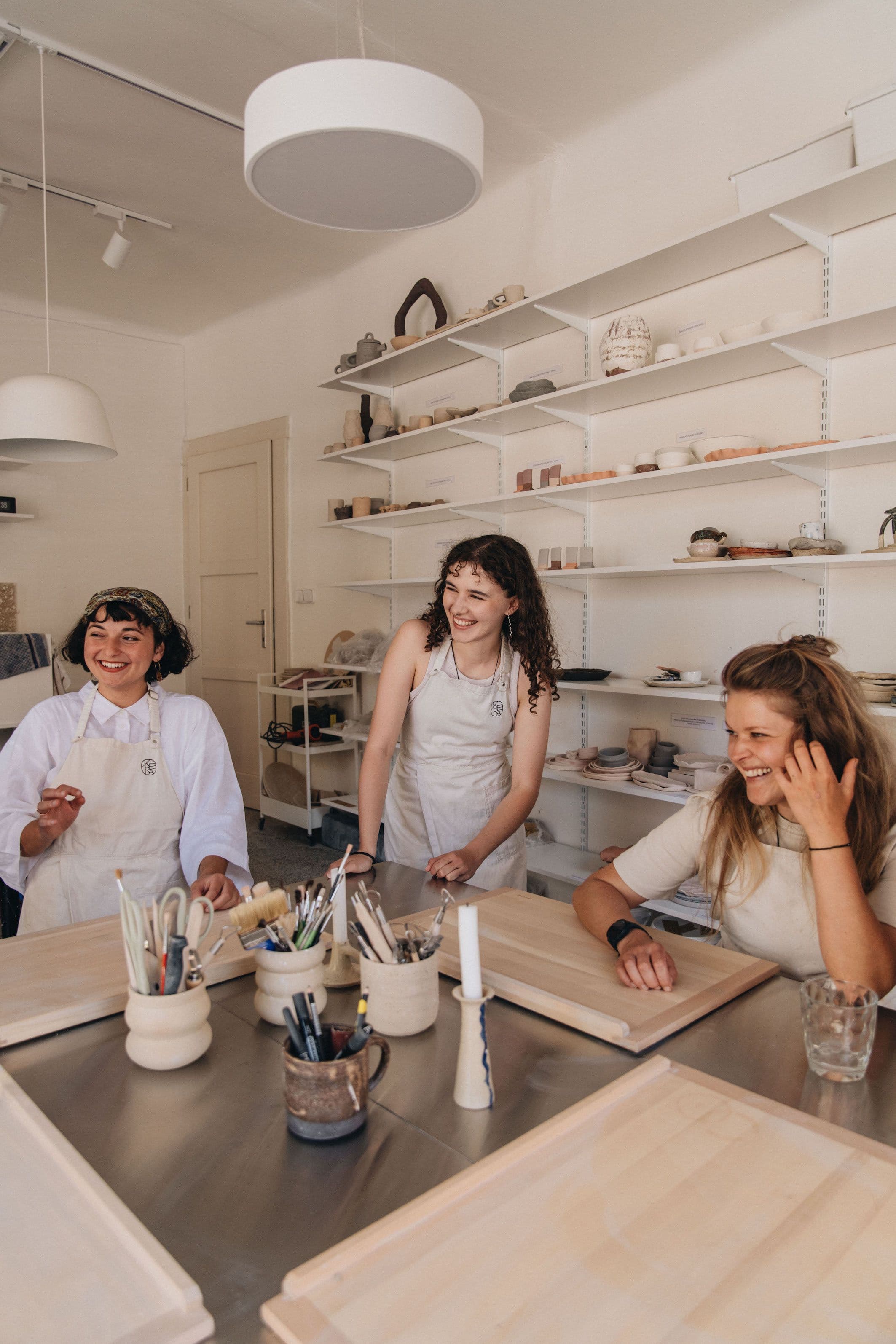 Pijeme víno nebo proselo, používáme engoby, pastelky, vodovky, oxidy, glazury, jsme kreativní. Kurz je základním kurzem glazovaní, vysvětlíme ti tedy zásady správného glazování od začátku a ukážeme všechny techniky používání podglazurních barev a pastelek na keramiku. Při workshopu použiješ ke glazování své přežahlé výrobky ze studia nebo si na místě můžeš koupit polotovary (150 - 500,-/ks), které nadekoruješ. V ceně kurzu jsou potřebné glazury a engoby, pastelky, voskovky a výpal. Veškeré potřebné nářadí i pomůcky jsou ti k dispozici. Během kurzu pracujeme v klidném a odpočinkovém prostředí - zapalujeme svíčky, posloucháme klidnou hudbu. Veselá nálada a smích je také velmi vítán! Pokud si vzpomeneš, udělej si během lekce fotky a videa pro porovnání hrubého a finálního výrobku a taky ke sdílení na sociálních sítích! Budeme rádi za tvé hodnocení a zpětnou vazbu na Googlu nebo Instagramu. Těšíme se na tebe!